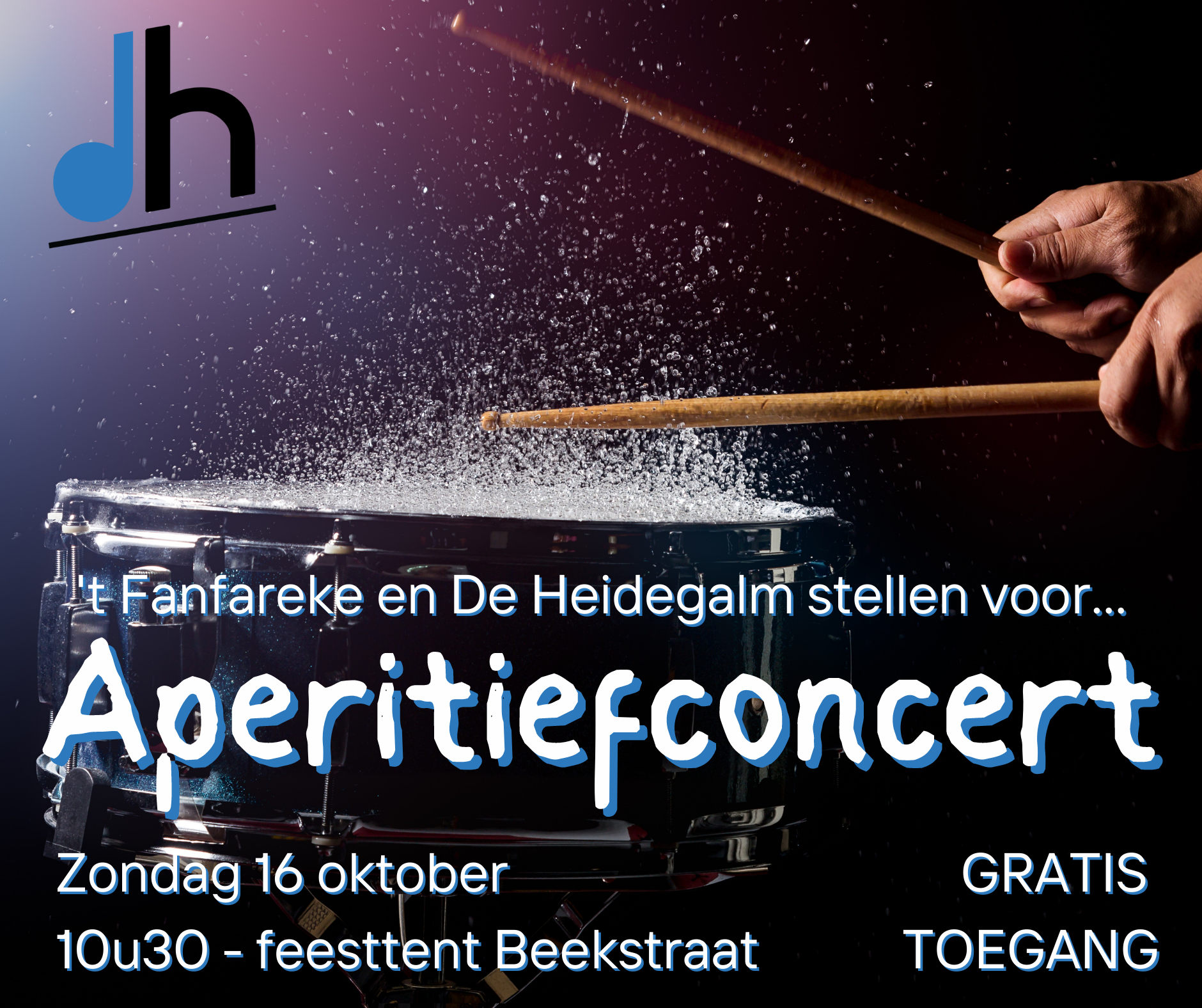 Zondag 16 oktober nodigen we iedereen opnieuw uit om naar onze feesttent te komen. ’t Fanfareke zal deze dag openen met hun Aperitiefconcert.